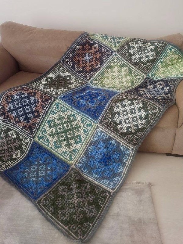 Квадрат в завитками. Новости наших чатов Этот мотив у нас с вами есть в проекте «Квадрат в день» — основной элемент обрамлен по углам бискорню-завитками. Участница чата Aslı связала прекрасный плед — наглядное пособие по работе с многоцветной пряжей🔥 Aslı: «Закончила плед 1.7 кг размер 1.10 ×1.90см .получилось огромное удовольствие.спасибо вам Юля». Квадрат в день: чат и схемы https://t.me/kvadratgendina