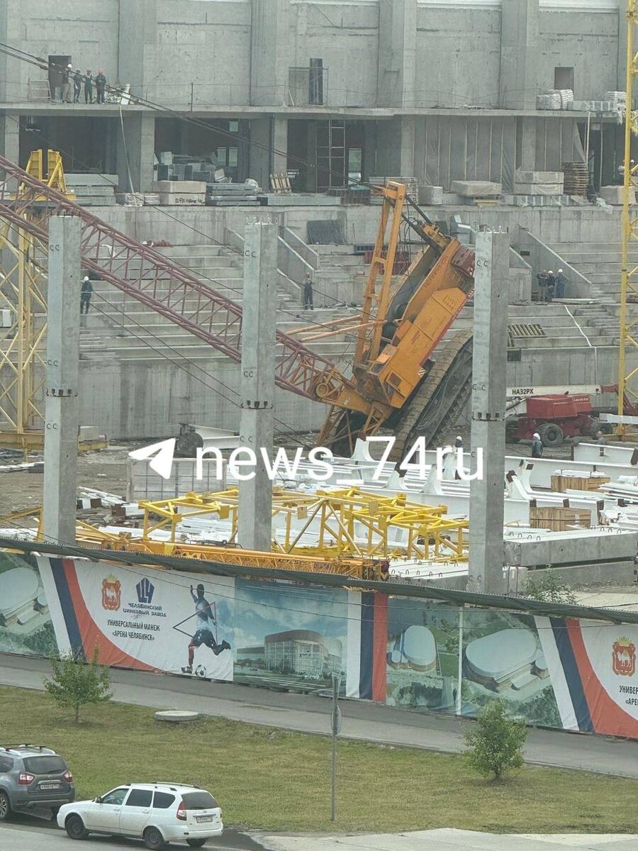 ⚡️На стройке футбольного манежа на Университетской Набережной опрокинулся кран