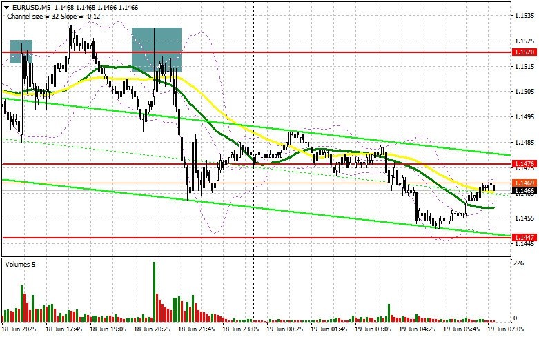Вчера было образовано несколько точек входа. Давайте посмотрим на 5-минутный график и разберемся с тем, что там произошло. В своем утреннем прогнозе я обращал внимание на уровень 1.1499 и планировал от него принимать решения по входу в рынок. Снижение и формирование ложного пробоя в районе 1.1499 дали хорошую точку входа на покупку евро, но до крупного движения вверх дело так и не дошло. После роста на 10 пунктов давление на евро вернулось. Во второй половине дня ложный пробой в районе 1.1520 привел к хорошему варианту на продажу евро, что вылилось в падение пары более чем на 40 пунктов.