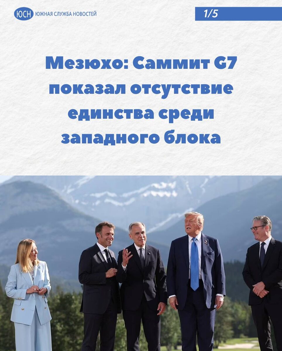 🔹 Саммит G7 показал отсутствие единства среди западного блока Встреча лидеров стран G7 на саммите, откуда досрочно удалился американский президент Дональд Трамп, а за ним – глава киевского режима Владимир Зеленский, прошла блекло и показала отсутствие подлинного единства среди государств западного блока. Таким мнением с «Южной службой новостей» поделился политолог Иван Мезюхо. 🌐 Южная служба новостей