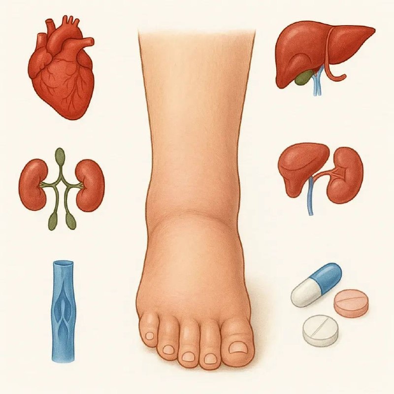 ❗️Отеки ног: Когда "просто устали" – это опасно? ⚠️ Отеки ног знакомы многим. Часто причина безобидна: жара, долгое сидение/стояние, соль. НО иногда это сигнал опасности! Не пропустите его! Основные ПРИЧИНЫ отеков: * Безобидные: Жара, неудобная поза, соль, ПМС, беременность (контроль врача!). * Серьезные (требуют врача!): * 🫀 Сердечная недостаточность! (отеки к вечеру + одышка, усталость). * 🦵 Варикоз/Венозная недостаточность (тяжесть, сосудистые звездочки). * 🧴 Болезни почек (отеки лица утром, изменения мочи). * Болезни печени. * Тромбоз глубоких вен (ТГВ)! (Отек ОДНОЙ ноги + боль, краснота! **СРОЧНО к врачу!**) * Лимфедема, лекарства, аллергия. 🚩 КОГДА ОПАСНО? "Красные флаги": 1. Отек ОДНОЙ ноги (особенно с болью/краснотой). 2. Внезапный, сильный отек. 3. Одышка (в покое/ночью), боль в груди, сердцебиение + отеки. 4. Отеки на животе, руках, лице. 5. Не проходят после отдыха с приподнятыми ногами. 6. Изменение цвета кожи, язвы. 7. У беременных: внезапные