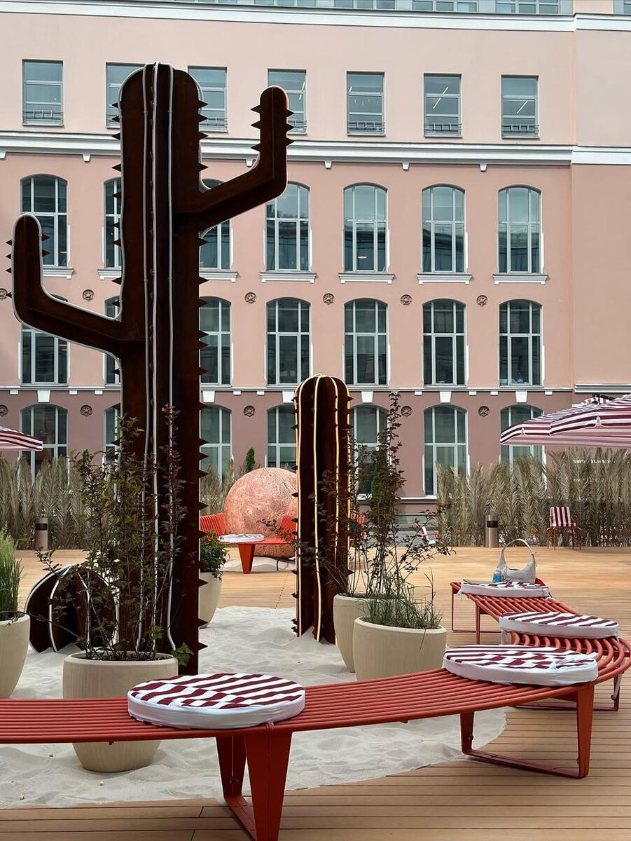 Новая локация в Москве Скрытый оазис посреди города: в тихом дворике вас ждёт настоящий кусочек лета. Атмосфера — как на побережье: тёплый белый песок, гигантские кактусы, зелёные пальмы и полное ощущение отдыха. Идеальное место, чтобы спрятаться от городской жары, насладиться прохладным напитком и почувствовать себя на курорте — не уезжая из города. 📍ул. Садовническая, 82, стр. 2 (пространство Яндекс Музея)