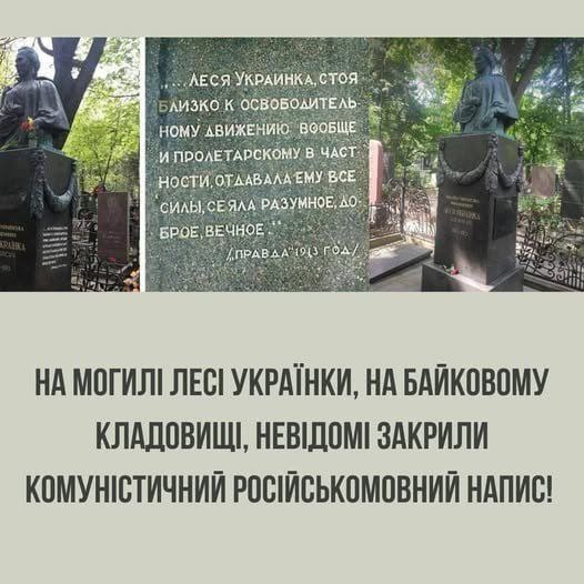 Памятник на могиле Леси Украинке декоммунизировали и закрыли надпись, что она сеяла разумное, доброе, вечное.