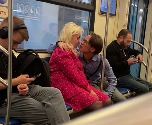На станции «Тверская» они чуть не пропустили остановку из-за увлеченности друг другом: он целовал ее руку так же театрально, как герои старых фильмов, а она громко смеялась. Я продолжала снимать скрытно — внутри меня всё рвало от смеха. Его энергия была заразительной: он то шептал ей комплименты так громко, что слышали все вокруг: «Ты моя королева!» — говорил он. Она отвечала шутками и тоже не скрывала улыбки.