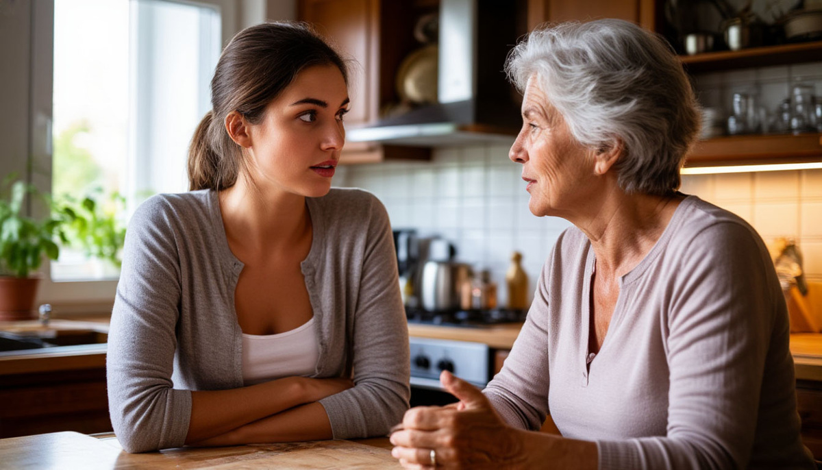 Невестка замерла на мгновение, потом медленно опустилась на стул, готовая к очередным упрекам.