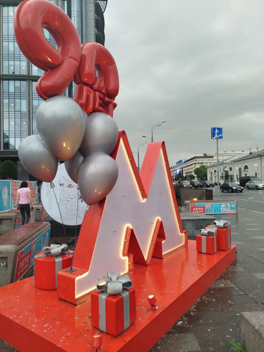 Вроде 90 лет метро прошло, ещё стоит буква М, так ещё на БКЛ поезд, приуроченный к этому, ездит с пассажирами, с него не сняли плёнку 🤦