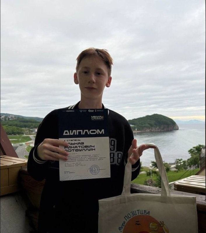💫 «Нур»лы Илназ Лотфуллин медиасаммиттан 1 нче дәрәҗә диплом белән кайтты