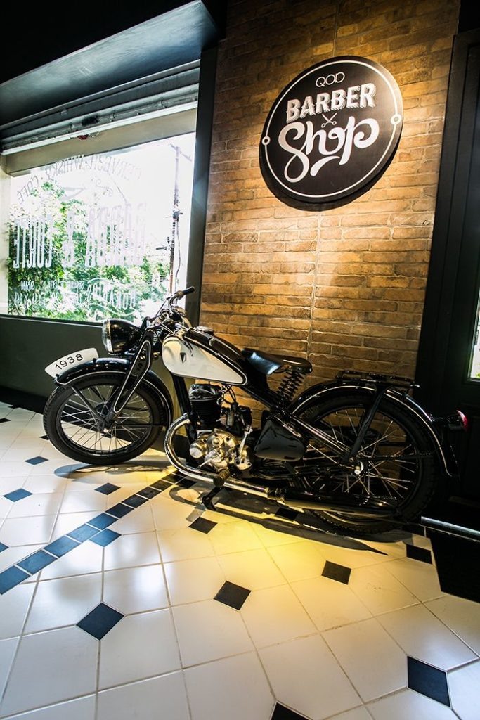 Сегодня рассмотрим интересные дизайны мужского салона Барбер шопа в байкерском стиле.. Это очень интересный дизайн, когда в интерьере присутствует настоящий мотоцикл. Посетители как бы чувствуют себя в любимом мото гараже, даже если такового у них нет. Это очень красивый и дорогой дизайн. Есть еще более интересное в этом направлении: когда в виде мотоцикла сделано кресло для клиента барбер шопа!