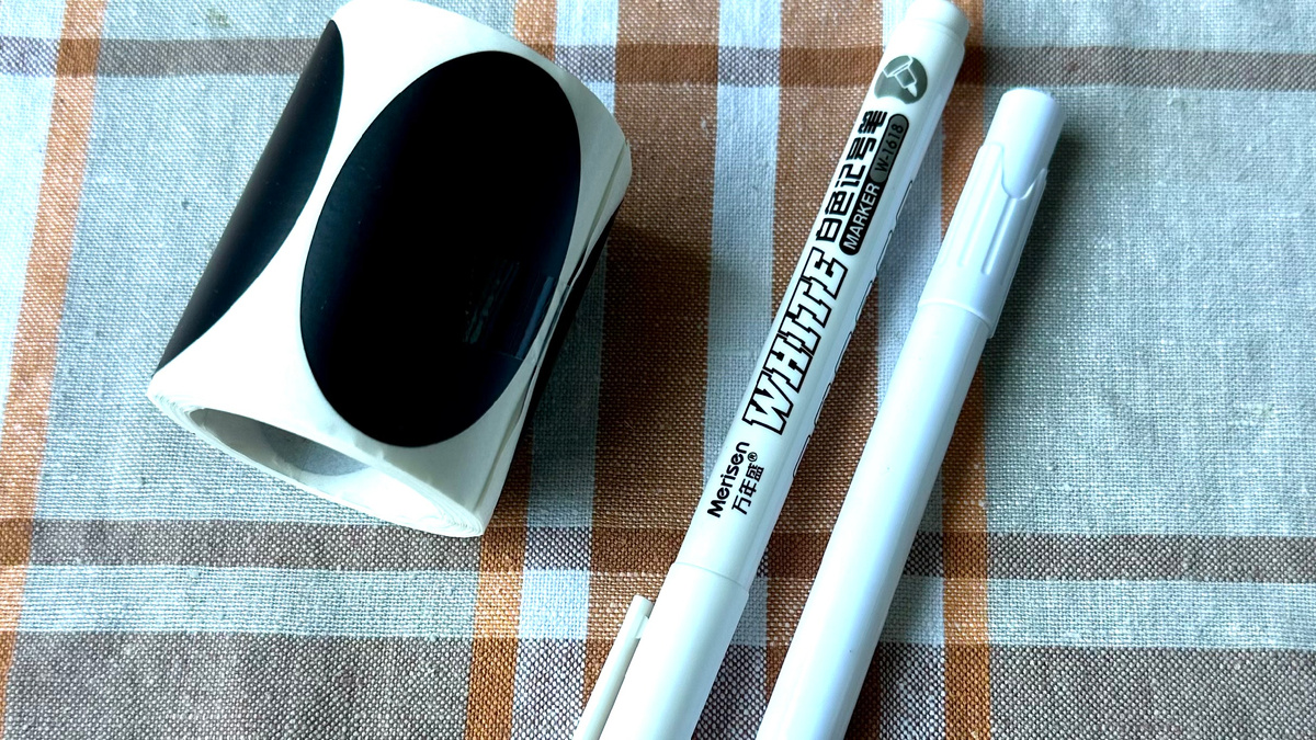 Первым делом я заказала на маркетплейсе набор из двух белых маркеров и чёрных наклеек.