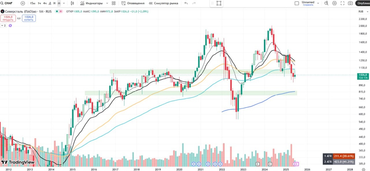 Подведем итог. Сектор выглядит печально, учитывая такое количество давящих факторов. Но именно в этом ключе мы можем увидеть Северсталь по 1000. Напомню, в период расцвета (низкие ставки и активное строительство в РФ) инвесторы молили о локальной коррекции и хотели купить бумаги по 1800 рублей.