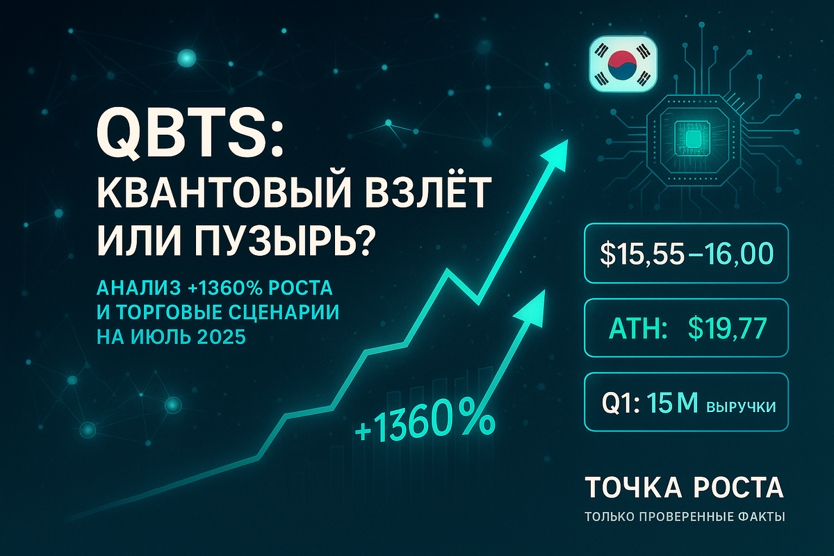 D-Wave Quantum показывает феноменальный рост +1360% за год, торгуясь в диапазоне $15.55-16.00 после достижения исторического максимума $19.77 (23 мая 2025). Партнерство с Университетом Йонсей от 17 июня и рекордные Q1 результаты ($15M выручки, +509% г/г) создают уникальную возможность для агрессивных спекулянтов на коротких таймфреймах.