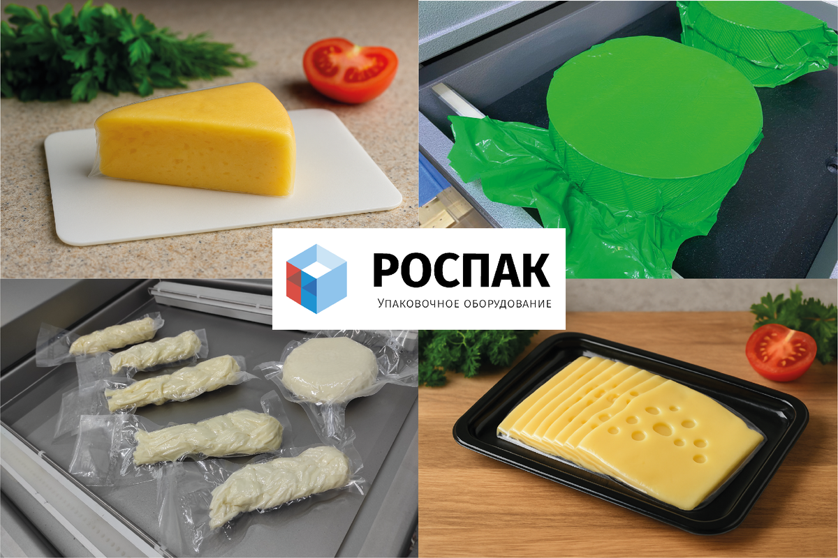 Сыр — живой продукт. Он “дышит”, активно взаимодействует с микрофлорой и атмосферой вокруг. Если неправильно упаковать сыр, он может потерять вкус, засохнуть, изменить текстуру или даже заплесневеть. Кроме того, упаковка — мощный инструмент маркетинга: прозрачная, аккуратная, брендированная — она привлекает взгляд и доверие потребителя. Оборудование для разных видов сыра 🔹 Вакуумная упаковка Идеальна для твердых и полутвердых сыров — чеддера, пармезана и подобных. Удаление воздуха сохраняет свежесть, влагу и предотвращает рост бактерий. Оборудование: 🔹 Скин-упаковка (VSP) Этот способ подходит как для твердых, так и мягких сыров, особенно в премиальном сегменте. Пленка плотно обтягивает продукт, создавая эффект "второй кожи", что выглядит шикарно на полке. Оборудование: 🔹 Упаковка в термоусадочные пакеты Вакуумная упаковка с последующей усадкой в термотанке — идеальный вариант для сыров с длительным сроком вызревания. Продукт в термоусадочном пакете, помещается в вакуумный упаковщик,