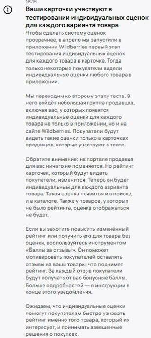 ❓WB раскатывает тест индивидуального рейтинга еще на группу продавцов