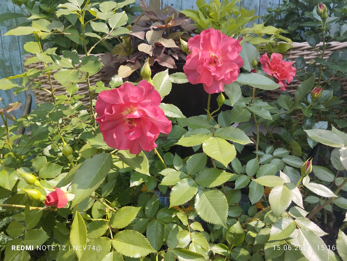 Не буду держать интригу, скажу сразу - мой фаворит текущего сезона среди роз - роза Синко де Майо (Cinco de Mayo). Оригинатор Tom Carruth США, 2006г. Еще одно название этой розы Celebration Time. Мне встретилась информация, что своё название роза получила в честь ежегодного мексиканского праздника Cinco de Mayo ( в переводе "Пятое мая"). Второе название этой розы переводится как "Время празднования". Получила я эту розу из питомника весной 2024 года. Мне хотелось попробовать вырастить несколько роз в контейнерной культуре. Выбирала я сорта покомпактнее. Одним из таких сортов стал Синко де Майо. Заявленная высота этой флорибунды 60-80 см, что меня вполне устроило. Вместо контейнеров я использовала рассадные пакеты на 15 литров. Идея заключалась в том, чтобы приобрести несколько кашпо из ротанга и поставить туда розы, высаженные в рассадные плотные пакеты. Идея моя провалилась, так как корневая у роз длинная, пакеты я сделала высокие. Кашпо из ротанга такой высоты мне сплести не смогли,