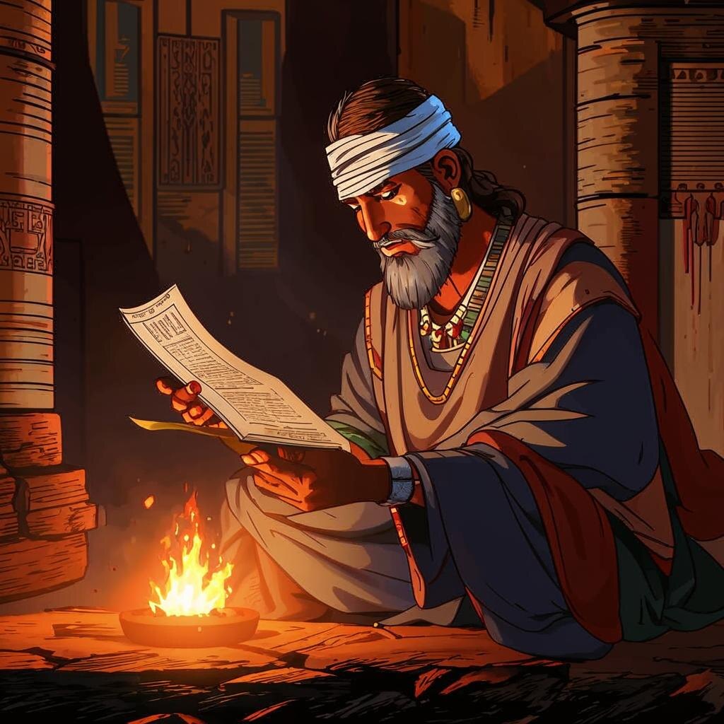 Прищурившись и присмотревшись получше Пастух вдруг узнал находившихся в кучке- Людей, с кем давно уже встречи он ждал, Ушедших когда-то в безвестную даль. Царю не сказав ни единого слова, Пастух побежал, спотыкаясь, с балкона. В то место, где сам он когда-то давно Стоял в первый раз посетив Вавилон.