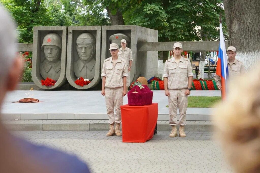 В Крымске на территории мемориала «Братская могила 246 советских воинов» прошла торжественная церемония, приуроченная ко Дню памяти и скорби. Здесь передали останки красноармейца Ивана Ивановича Чуприкова для последующего захоронения в Москве. Поисковики обнаружили останки бойца под конец прошлого года — в трех километрах от поселка Виноградного. Как уточнили участники экспедиции, найденный смертный медальон с запиской помог установить личность. В церемонии участвовали представители власти, военные, казаки, юнармейцы, добровольцы, участники специальной военной операции. Эксгумация останков производилась недавно. В братской могиле было обнаружено девять солдат, удалось установить личность только одного. Вице-губернатор Кубани Александр Власов сообщил, что благодаря содействию коллег из Липецкой области нашли родственников погибшего. Один из правнуков, Дмитрий Федосов, возглавляет поисковый отряд «Витязь» в Москве. Именно ему и передали останки прадеда. Прах Ивана Чуприкова будет захорон