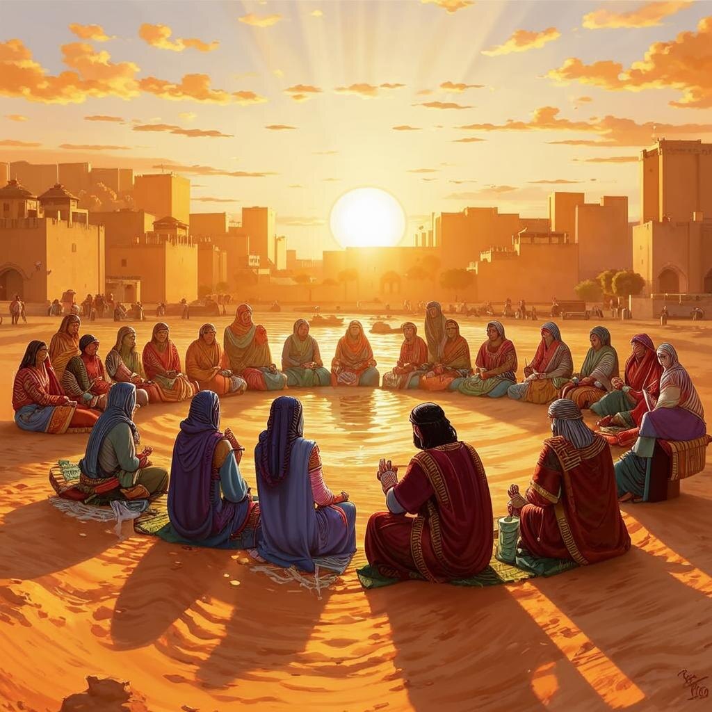 Утром Пастух облачился в халат, Который носила дворцовая знать, Из конницы царской на день взял в аренду Высокую и дорогую карету, Друзей усадил на большие повозки, В которых катались солидные гости, И многочисленной шумной колонной Процессия вышла к заветному дому.