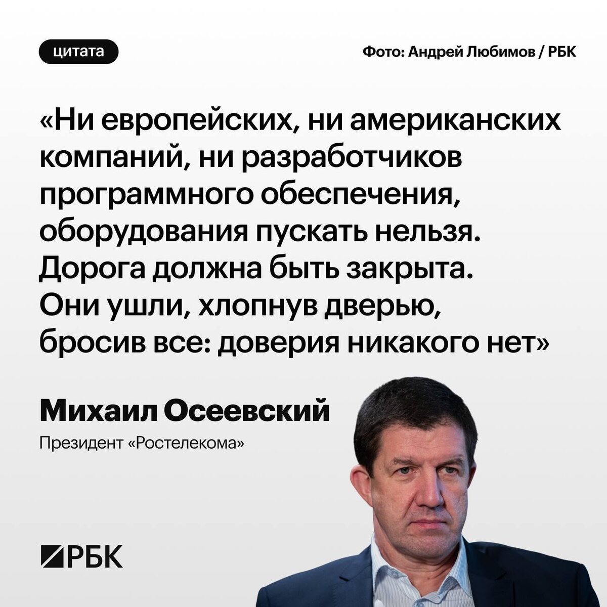 В Россию не нужно пускать обратно европейские и американские компании, которые ушли в 2022 году, заявил президент «Ростелекома» Михаил