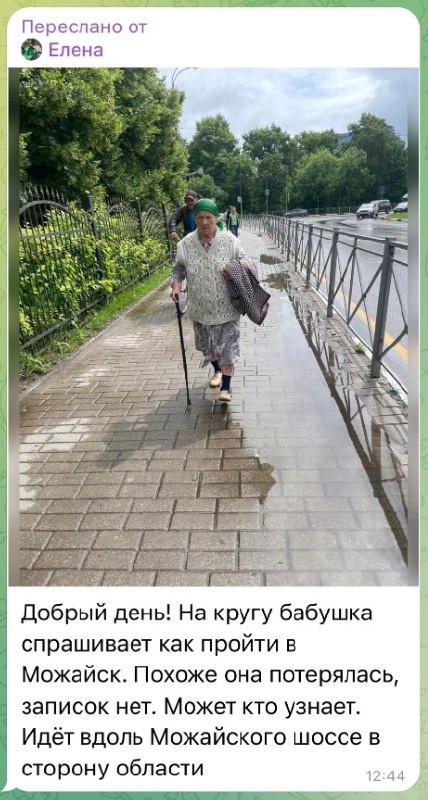 В одинцовском чате написали про бабушку из Можайска, которая заблудилась. Надеемся с ней все хорошо