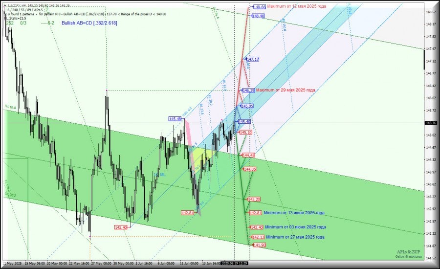 https://basechop.ru/wordpress/?p=47058 Операционный масштаб Minute (таймфрейм h4) USD/JPY – h4 – обзор вариантов движения с 19 июня 2025 г. Предыдущий обзор US Dollar vs Japanese Yen (таймфрейм h4) от 16.06.2025 г. 10:21 ____________________ US Dollar vs Japanese Yen Развитие движения валюты “страны восходящего солнца” – USD/JPY -h4 – с 19 июня 2025 года продолжится в соответствии с отработкой и направлением пробоя границ зоны равновесия (145.10 – 145.40 – 145.85) восходящих вил младшего операционного масштаба Minuette-h1. Восходящее движение. Пробой верхней границы ISL61.8 (уровень сопротивления 145.85) зоны равновесия вил младшего операционного масштаба Minuette-h1 сделает возможным достижение валютой “страны восходящего солнца” maxximum 146.29 от 29 мая 2025 года и конечной линии FSL Minuette-h1 (147.17). Нисходящее движение. При пробое уровня поддержки 142.05 на нижней границе ISL38.2 зоны равновесия вил младшего операционного масштаба Minuette-h1 нисходящее движение USD/J