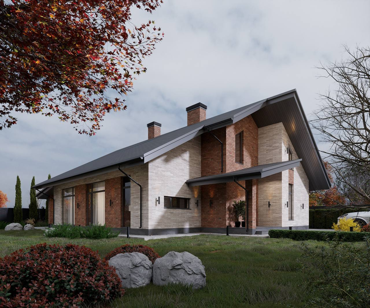 Этот дом — воплощение концепции уюта. Тёплые оттенки в отделке, необычный фасад, панорамные окна — сюда захочется возвращаться, проводить здесь время с близкими, разделять с ними главные моменты жизни. Площадь дома — 186 квадратных метров + 17 квадратных метров терраса. В прихожей есть гардеробная зона, где можно оставить верхнюю одежду, а немного дальше — гостевой санузел и отдельная гардеробная для хранения вещей. На первом этаже находится кухня-гостиная площадью 53 квадратных метра и примыкающая к ней кладовая, а также гостевая спальня с отдельной ванной комнатой и гардеробной. Второй этаж полностью отдан под мастер-блок: ванная в 15 квадратных метров и спальня, которая, благодаря грамотному зонированию, совмещает в себе функции кабинета и комнаты отдыха. Отделка фасадов — керамический кирпич серого и терракотового цветов, кровля — тёмно-серая гибкая черепица, цоколь — серый керамогранит.