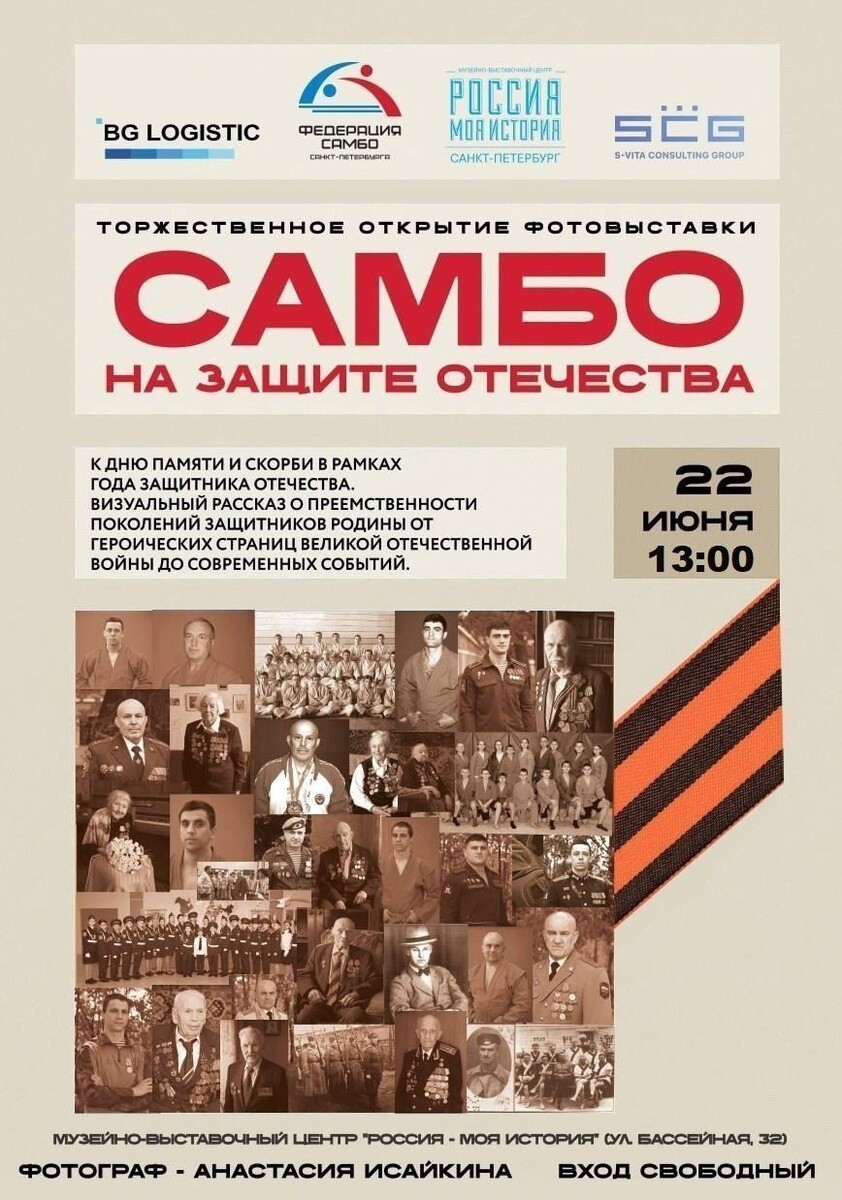 В Музейно-выставочном комплексе «Россия – моя история» 22 июня в 13:00 состоится открытие фотовыставки «Самбо: на защите Отечества» – глубокий визуальный и эмоциональный рассказ о преемственности поколений защитников Родины через призму самбо, отечественного боевого искусства. В центре проекта авторская фотосерия Анастасии Исайкиной, жены чемпиона мира по самбо и участника СВО. В программе показательные выступления самбистов и общение гостей обладателями ордена «За заслуги перед Отечеством» и медалей «За отвагу», участниками СВО и войны в Чечне. Ранее «Петербургский дневник» сообщал, что в Петербурге «Единая Россия» займется развитием самбо, дзюдо и спортивной борьбы.