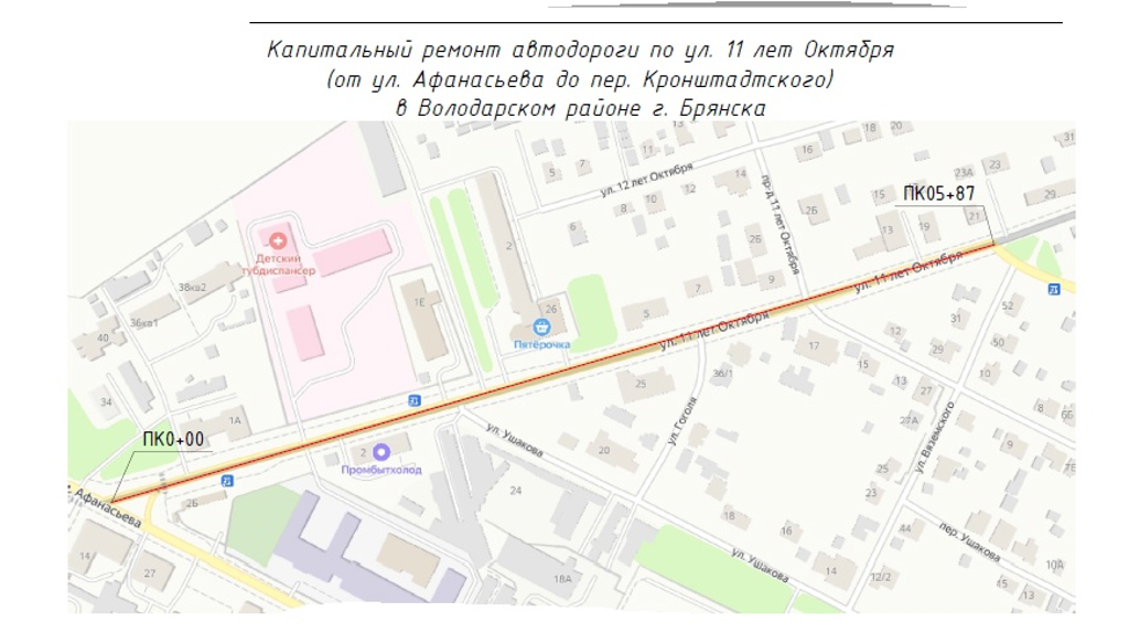 В 2025 году улицу 11 лет Октября в Брянске ждет капитальный ремонт