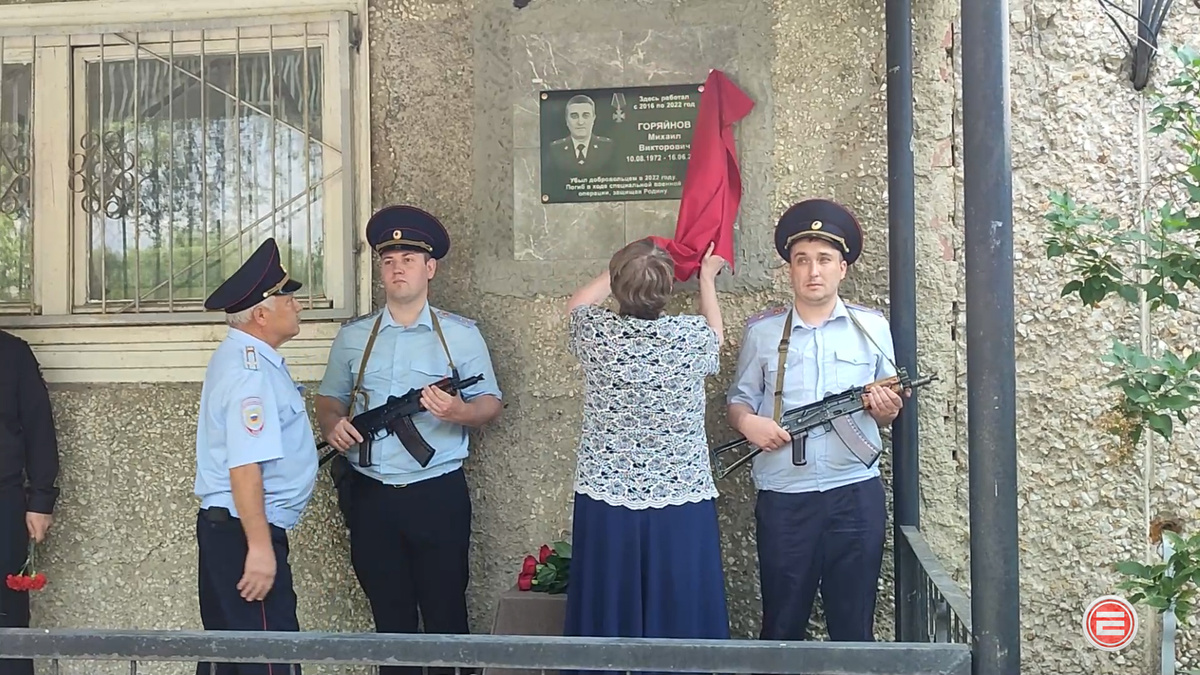 Полицейские Ревды открыли мемориальную доску в честь погибшего коллеги Михаила Горяйнова 16 июня у стен военного комиссариата Ревды состоялась торжественная церемония открытия мемориальной доски в честь ветерана органов внутренних дел майора полиции в отставке Михаила Горяйнова. Право открыть памятную доску предоставили матери Михаила Викторовича – Наталье Ильиничне Давлетшиной. Мемориальная доска установлена на здании военного комиссариата, где Михаил Викторович работал после увольнения со службы в ревдинской полиции. Будучи сотрудником военкомата, по зову сердца он ушел добровольцем на СВО, где погиб при выполнении боевого задания. Памятная доска открыта в день трехлетней годовщины со дня его гибели. Три года назад Михаил Горяйнов в составе разведывательно-штурмовой группы вошел в небольшой населенный пункт Мазановка в Харьковской области. Его сослуживец Андрей Волков, бывший коллега по ревдинской полиции, хороший друг, с которым они вместе ушли добровольцами на СВО, рассказал о тра