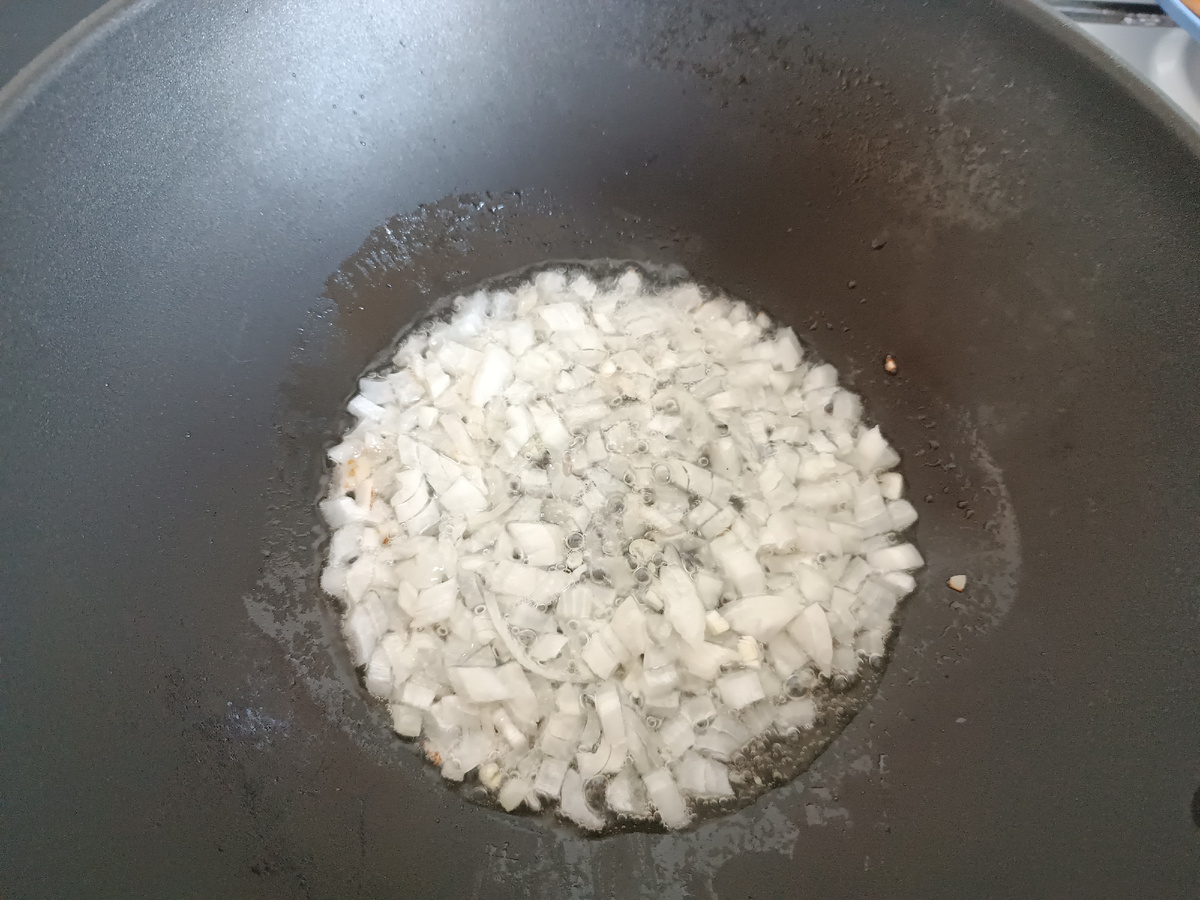 Лук мелко нарезаем, слегка обжариваем на растительном масле.