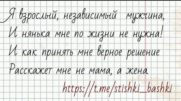 Про состоятельность #независимый #мужик #стишкиизбашки Стишок каждый день для настроения @stishki_bashki 📹 - видеостишки тут 👈 🙊 - а тут можно комментировать 👈 Поделитесь стишком с друзьями