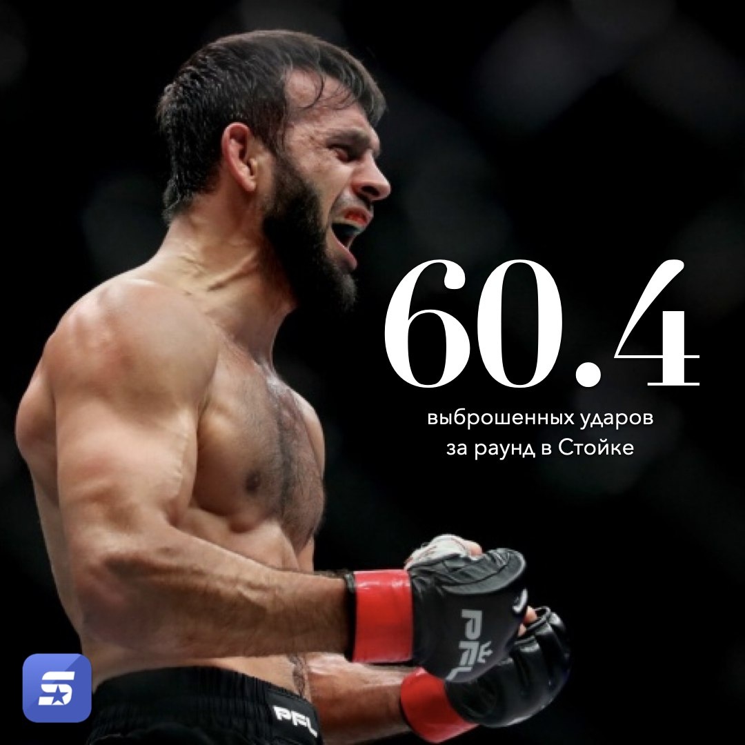 🥊 Гаджи Рабаданов выбрасывает в среднем 60,4 удара в стойке за бой