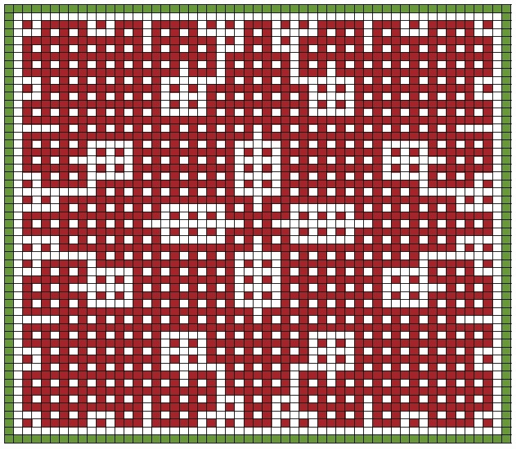 Последний ряд-рамку в схеме выделила другим цветом, её вязать необязательно. Схема состоит из двадцати семи рядов, включая рамку. Как обычно в схеме расставила крестики и находится она в галерее.