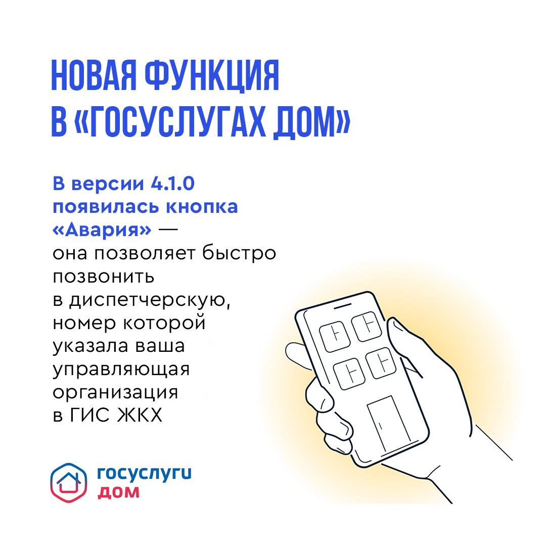 В обновлённом приложении «Госуслуги Дом» появилась кнопка для звонка в аварийно-диспетчерскую службу.