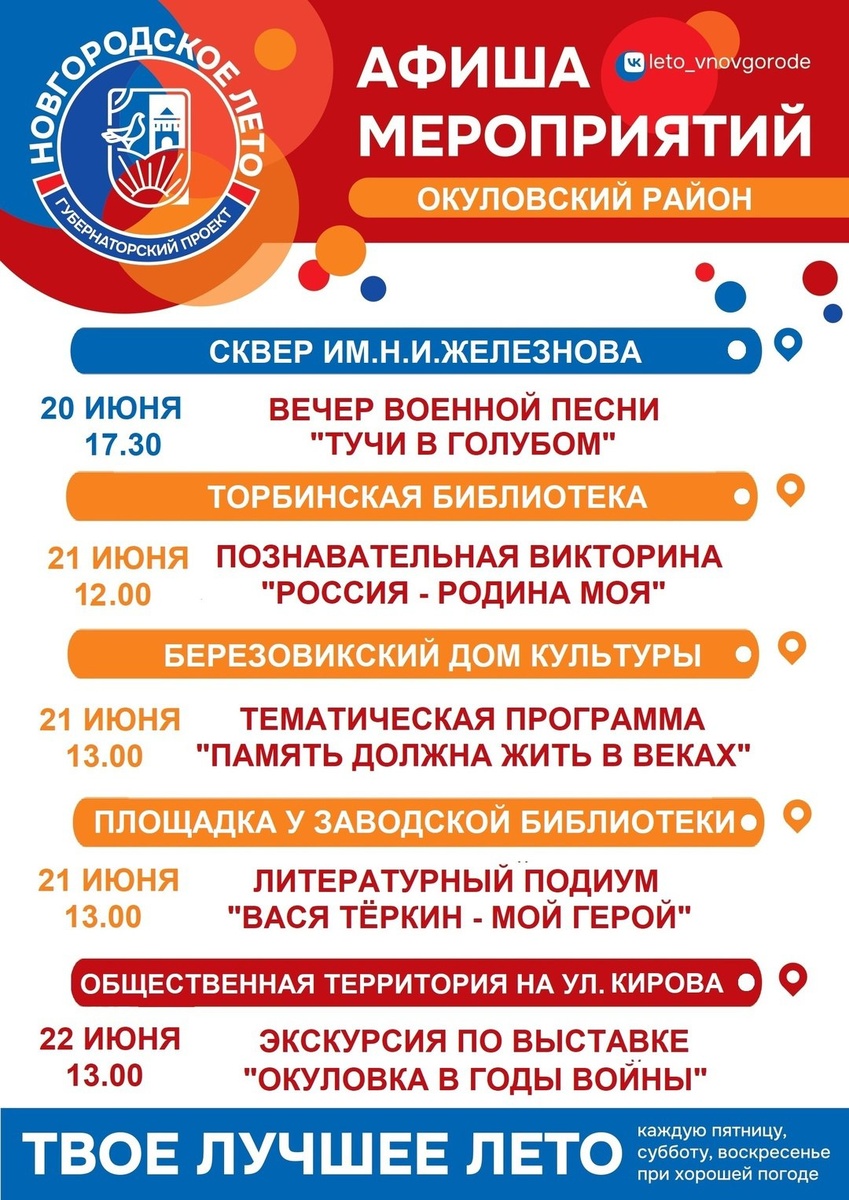 Афиша мероприятий в рамках Губернаторского проекта «Новгородское лето»!