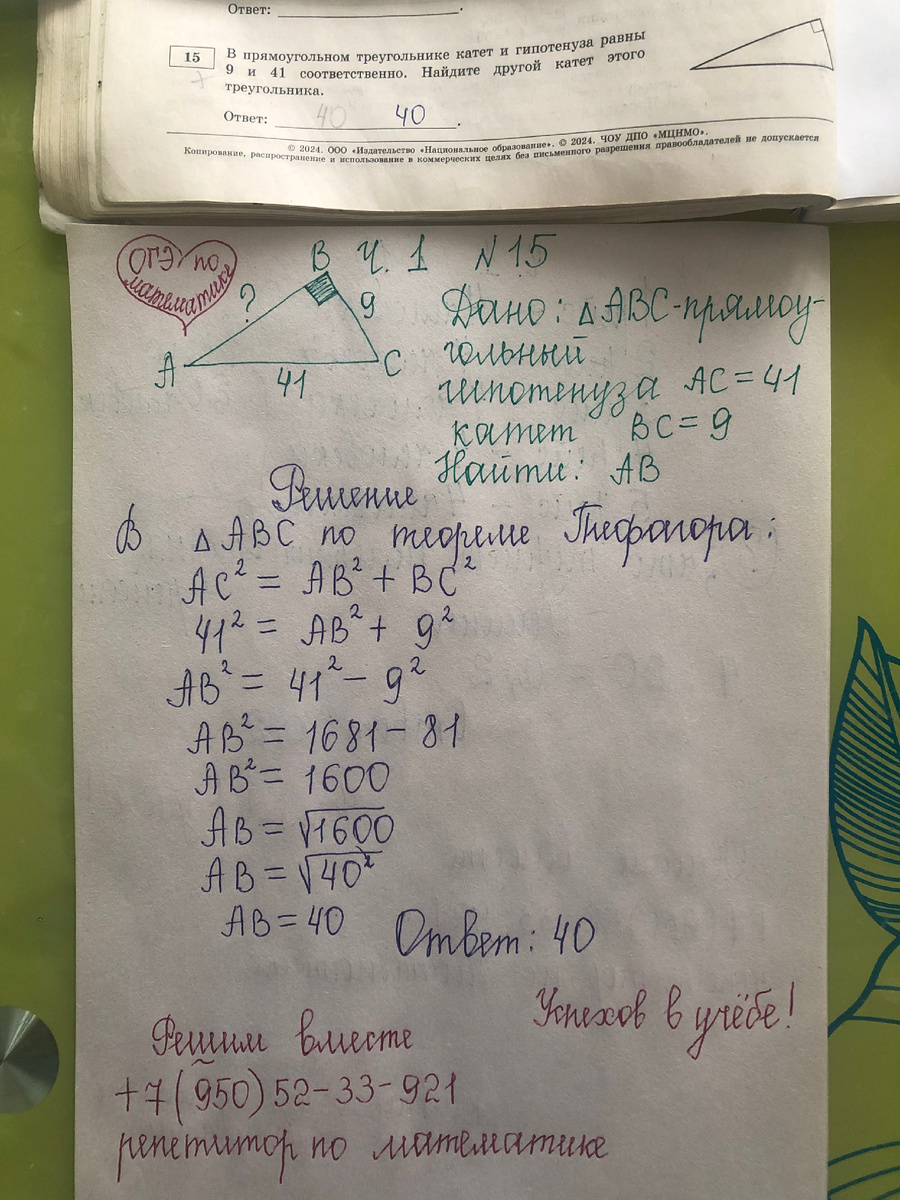 ОГЭ по математике: найти катет (ч. 1 номер 15)