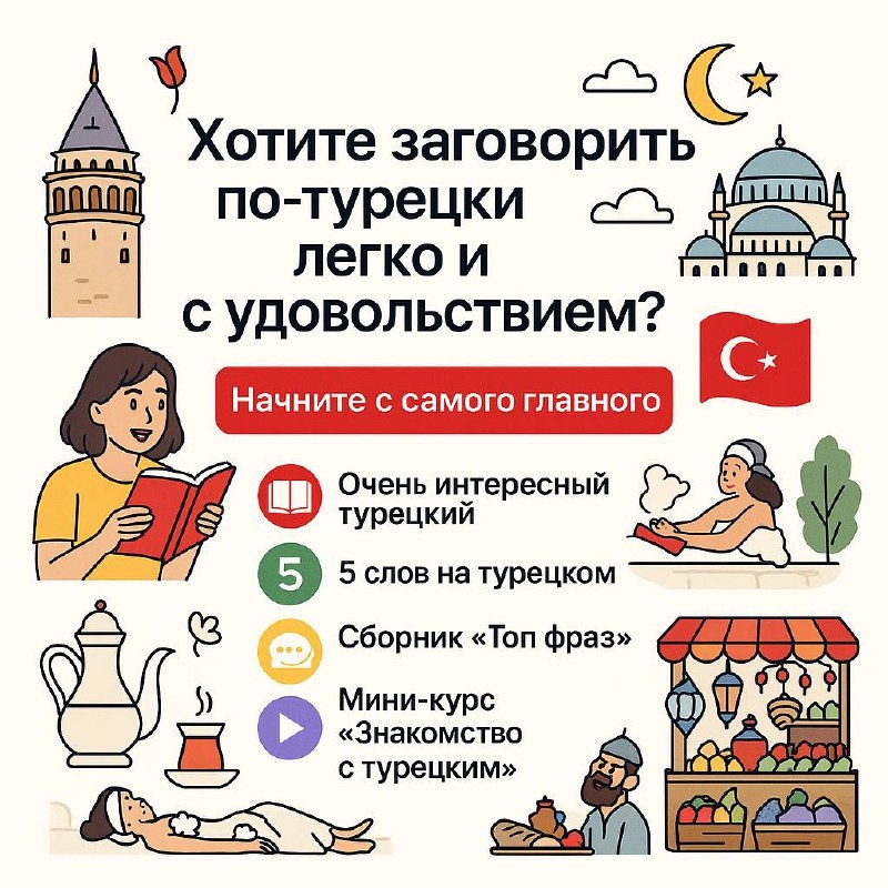 Подписывайтесь на наши каналы — каждый из них поможет вам прокачать турецкий с нуля: легко и с удовольствием 🇹🇷