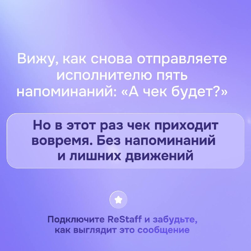 🔮 Предсказания для предпринимателей Мы заглянули в будущее — и кое-что увидели. Чеки приходят вовремя, налоги оплачены, отчеты в порядке, а выплаты за границу — без стресса. Совпадение? Скорее, автоматизация. 8 предсказаний, которые легко реализовать с ReStaff. 👇 Откройте каждое — возможно, это ваш завтрашний день. #ReStaff_Компаниям #ReStaff_Самозанятым