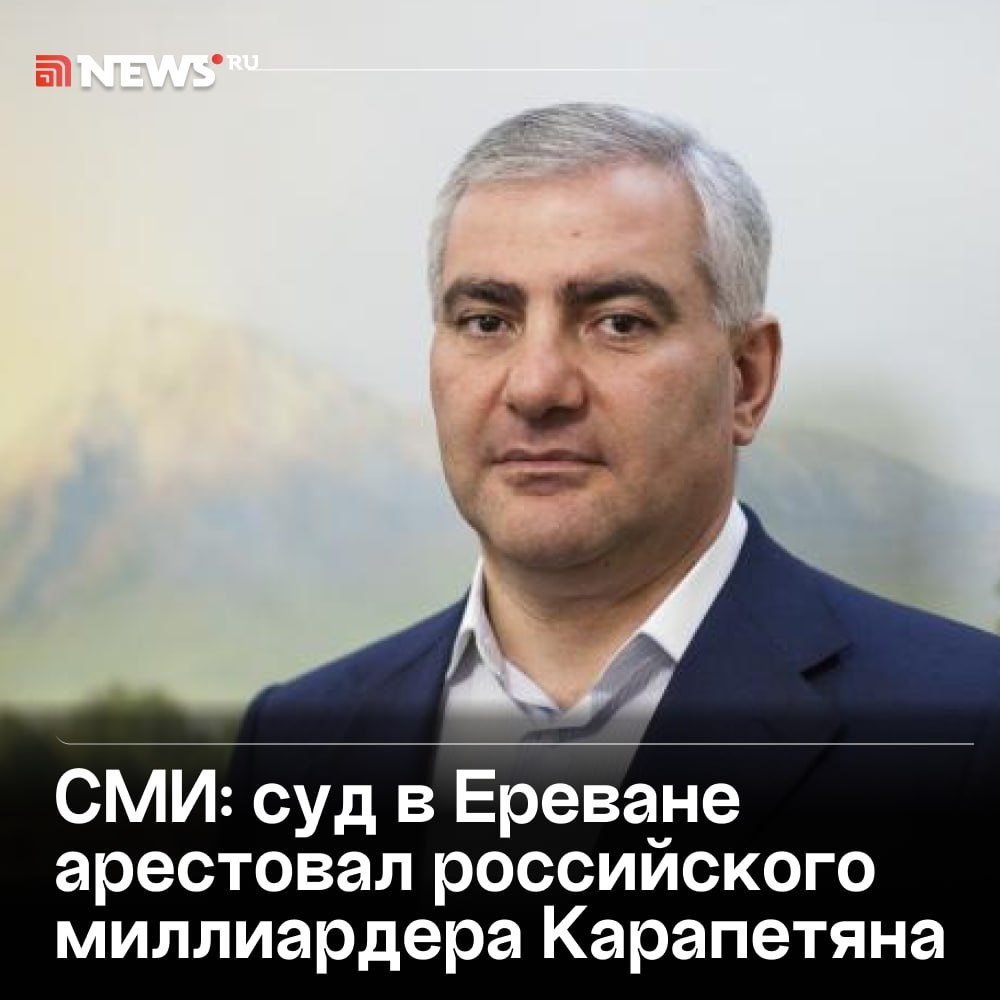 В ответ на пост Предпринимателя Самвела Карапетяна арестовали на два месяца, пишет издание News am. Миллиардера обвиняют в публичных призывах к захвату власти в Армении, нарушении территориальной целостности страны, отказе от суверенитета и насильственном свержении конституционного строя. Незадолго до ареста Карапетян обвинил Пашиняна в несправедливых нападках на Армянскую апостольскую церковь. ⭕️ Подписаться | Прислать новость | Буст