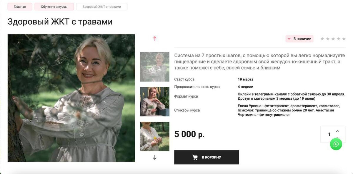 Елена - владелица магазина "Живия" и потрясающая женщина😍 Продают травы и природные средства для поддержания и восстановления здоровья. Запрос: монетизировать с помощью онлайн-курса 174.000 аудитории, которую она собрала с командой - внимание ОРГАНИЧЕСКИ через рилсы!!!! Каждый день прибавляется по 1000-2000 живых подписчиков🔥 Столкнулись с проблемой: слишком много консультируют в директе по травам и болезням, не хватает ни времени, ни возможности так много объяснять. ✔️ проведен опрос целевой теплой аудитории на тему курса ✔️ выбрана тема курса из нескольких основных проблем, с которыми обращаются покупатели ✔️ прописана и собрана методология курса ✔️ дана схема прогрева для первого запуска ✔️ прописан прототип продающего лендинга ✔️ рекомендации по техническим настройкам ✔️ создан и упакован закрытые канал и чат курса Сразу же переубедила Елену не делать курс на геткурсе и не платить лишние деньги за платформу, дизайн, оператора и монтажеров. Мой девиз: «чем проще, чем лучше, снача