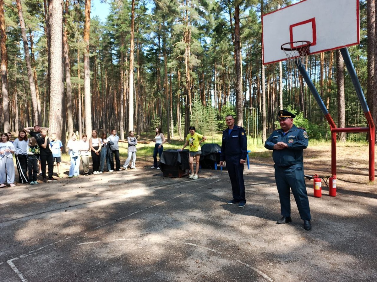 Сотрудники территориального отдела надзорной деятельности и профилактической работы Главного управления МЧС России по Рязанской области в детском оздоровительном лагере «Озерный» Спасского района провели с персоналом и детьми тренировочную эвакуацию из корпусов. Сигнал автоматической пожарной сигнализации оповестил всех о случившемся условном пожаре. Дети и персонал начали эвакуацию по эвакуационным выходам на баскетбольную площадку. Начальник отделения надзорной деятельности и профилактической работы по Спасскому району Сергей Аношин уделил особое внимание пожарам, возникшим по причине детской шалости, рассказал о том, как должен действовать ребенок, если случилась беда, куда звонить и какие меры предпринимать. В завершении мероприятия ребятам продемонстрировали принцип действия работы огнетушителя.