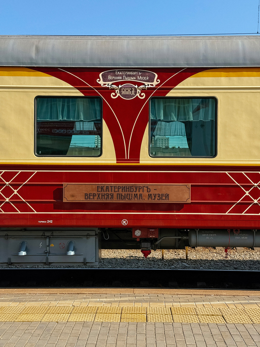 Кто меня читает давно, хорошо знает, что я люблю ретро-поезда и на многих из них в России ездил. Само собой, приехав в Екатеринбург не смог упустить возможности протестировать и местный маршрут "Уральский экспресс". Он стартует прямо с главного вокзала Екатеринбурга, довозит до станции Верхняя Пышма, а там – всего три минуты пешком до мощнейшего технического музея УГМК.