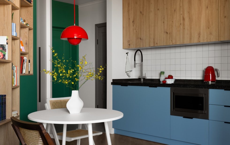 Спальня цвета лимонного сорбета, зеленая гостиная, пыльно-синяя кухня — дизайнер интересно сыграл с неожиданными цветовыми сочетаниями Место: Алматы Тип дома: Новостройка Метраж: 45 кв. м Год реализации: 2023 Комнаты: 2 Cанузлы: 1 Высота потолков: 2,7 м Бюджет: 1,4 млн рублей Дизайн: Фариз Мамедов Стилист: Анель Ерденова Заказчик, молодой холостяк, обратился к дизайнеру Фаризу Мамедову из FM Interiors с просьбой подобрать мебель и декор для его новой квартиры с ремонтом от предыдущих жильцов. При осмотре недвижимости Фариза смутили бесполезно потраченные квадратные метры и неудобная планировка. Не сказав об этом клиенту, он решил разработать несколько новых вариантов планировок, чтобы показать, как можно улучшить пространство. «Как я смогу спокойно спать, зная, что все может быть так?» — воскликнул заказчик и сразу согласился на полноценный ремонт. Перед началом работы в квартире уже была отделка и часть мебели. Хотя в помещении не было несущих колонн или ригелей, форма была нестандарт