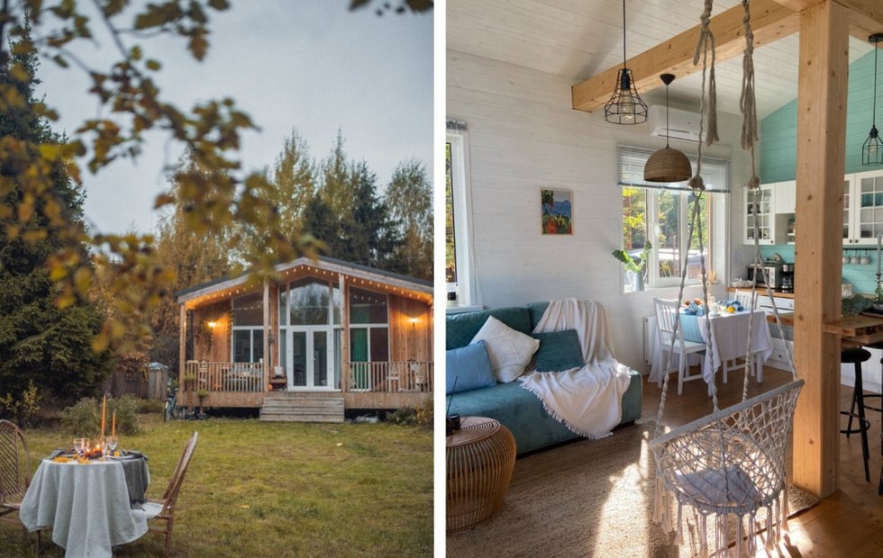 Хозяйка дома сама придумала проект и дизайн домика для себя и своих собак, а сейчас сдает его посуточно Место: Звенигород Метраж: 85 кв. м Этажи: 1 Комнаты: 3 Высота потолков 4,5 м Хозяйка этого домика — фотограф Наталья Таминцева, она сама спроектировала его и оформила для сдачи в аренду. Получился уютный и бюджетный интерьер в средиземноморском стиле с белой кухней и практичной отделкой. Дом площадью 85 квадратных метров под ключ обошелся в 3 млн рублей. Изначально Наталья рассматривала возможность покупки готового модульного дома, который возводится за несколько дней, но смутила высокая цена. Поэтому хозяйка решила все придумать сама. В результате в доме получилось три комнаты: кухня-гостиная, спальня и гостевая, плюс гардеробная, санузел и котельная. Еще есть открытая веранда. Плотные шторы блэкаут хорошо работают в зимнее время: они не пропускают холодный воздух от окон. Окна со специальным энергосберегающим слоем. Остекление обошлось в 370 тысяч рублей. Для внутренней отделки вы