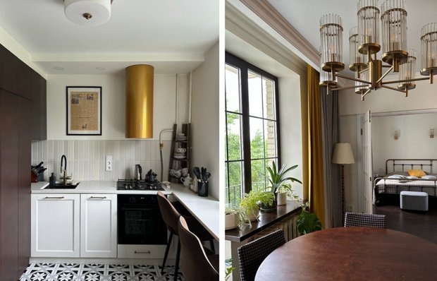 В этой квартире проживает онлайн-маркетолог Юля Попова вместе с мужем и двумя детьми. Дизайн-проект разработала дизайнер Олеся Цветкова, а реализацию проекта супруги взяли на себя и успешно завершили за 90 дней. В квартире была выполнена законная перепланировка, в результате которой в четырехкомнатной квартире удалось создать три изолированные комнаты, гостиную, отдельную кухню с газом и предусмотреть множество мест для хранения.