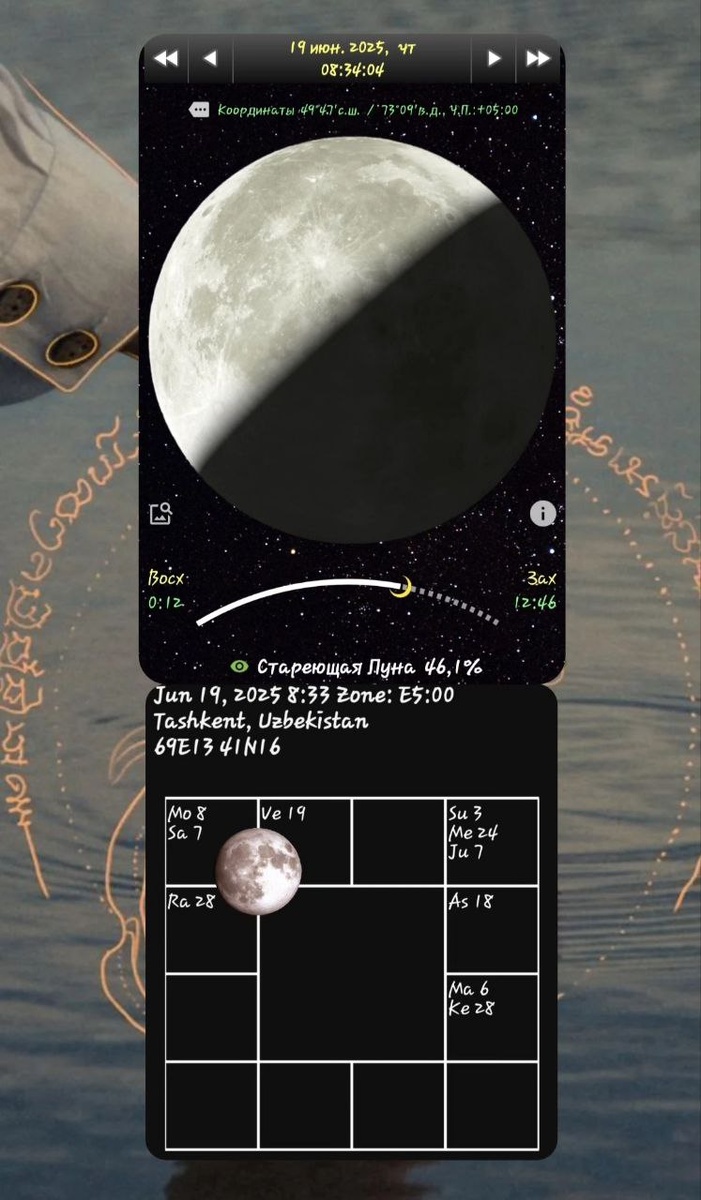 🌜19.06.2025.🌛 Ведическая Астрология Убывающая Луна в Рыбах. Кала Амрита Йога. 🌜 Луна нырнула в Рыбы, затаив дыхание. В Рыбах Луна ныряет глубоко, чтобы отыскать и нащупать самое сокровенное, самое ценное, что будет вдохновлять её впоследующем. Это, как погружаться на дно океана в поисках затерянных сокровищ. Толща океана давит-так сейчас работает Сатурн, который недавно зашёл в Рыбы и вместе с Луной они сейчас в поиске затерянных внутренних ценностей. Поэтому, поменьше суеты и паники, чтобы не было перерасхода кислорода, чтобы запаса сил хватило поднятся на берег, да и ещё с потрясающими находками. Помните, что всё проходит, и даже самые неприятные обстоятельства имеют предел. У всего есть свой ресурс. Девиз дня: Там, где ты споткнулся, спрятано твоё сокровище. Джозеф Кэмпбелл Хорошего вам дня ☀️берегите себя и близких 🙏 © с уважением, Юля💛