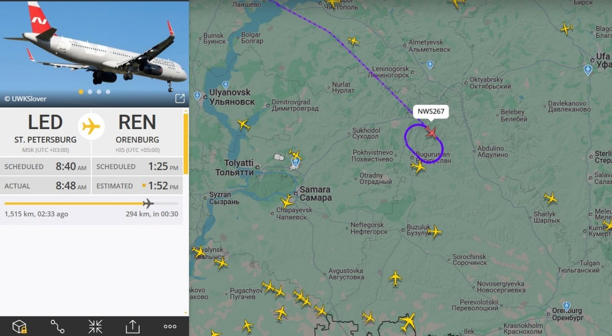 Самолет из Москвы, который должен был прибыть в Оренбург в 12:55, сейчас кружит в небе над Сорочинском. А самолет из Санкт-Петербурга (прибытие по расписанию в 13:20) - над Бугурусланом