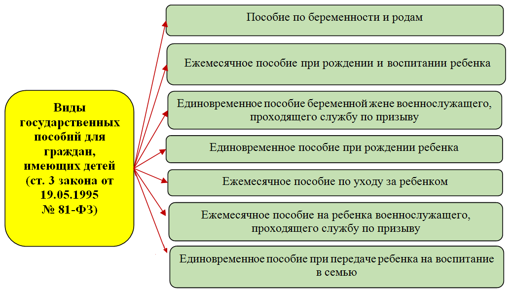 На рисунке ниже представлены виды пособий для всех будущих мам (до рождения ребенка) и после появления малыша на свет: