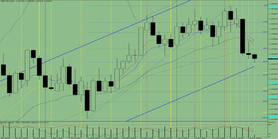 https://basechop.ru/wordpress/?p=47023 Трендовый анализ (рис. 1). В четверг рынок от уровня 1.3417 (закрытие вчерашней дневной свечи) может продолжить движение вниз с целью 1.3366 – линия поддержки (синяя жирная линия). От этой линии, возможно, цена откатит вверх с целью 1.3384 – откатный уровень 50% (синяя пунктирная линия). Рис. 1 (дневной график). Комплексный анализ: 1. – индикаторный анализ – вниз; 2. – уровни Фибоначчи – вниз; 3. – объёмы – вниз; 4. – свечной анализ – вниз; 5. – трендовый анализ – вниз; 6. – линии Боллинджера – вниз; 7. – недельный график вниз. 8. Общий вывод: нисходящая тенденция. Альтернативный сценарий: цена от уровня 1.3417 (закрытие вчерашней дневной свечи) может начать движение вниз с целью 1.3384 – откатный уровень 50% (синяя пунктирная линия). От этого уровня, возможно, цена откатит вверх с целью 13405 – исторический уровень сопротивления (голубая пунктирная линия). Материал предоставлен компанией InstaForex – www.instaforex.com Трендовый анализ (р