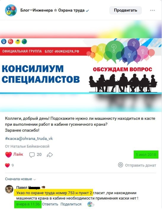 Когда старые раны напоминают о себе спустя много лет Семь лет спустя... Уважаемый Павел, Указы в России имеет права издавать только Царь Президент. Они точно не касаются вопроса ношения каски крановщиками. Читаем Правила по охране труда при строительстве, реконструкции и ремонте, утверждённые приказом Минтруда России от 11.12.2020 № 883н: 30. Лица, находящиеся на строительной площадке, обязаны носить защитные каски. Во всех остальных случаях правила ношения каски определяются инструкцией по охране труда. Блог—Инженера для тебя ❤️ ⭐️ СУОТ 📍 Услуги