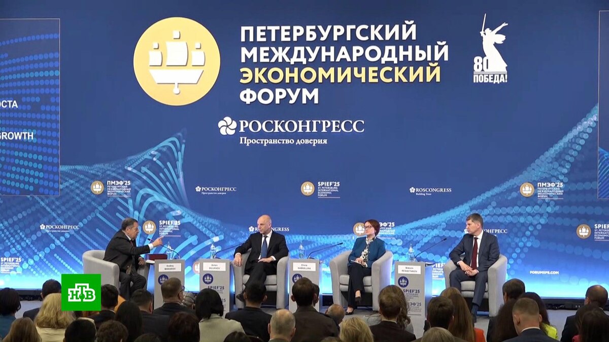 [ Смотреть видео на сайте НТВ ] Петербургский международный экономический форум — мероприятие масштабное. Только в его деловой программе насчитывается около 200 сессий, этим утром начались сразу 27 сессий. На этом фоне не может затеряться обсуждение российской экономики в компании министра финансов Антона Силуанова, главы ЦБ Эльвиры Набиуллиной и главы Минэкономики Максима Решетникова. Как отметил традиционный модератор таких сессий и глава думского комитета по бюджету Андрей Макаров, может ли добрым быть утро, которое начинается с макроэкономики. Несмотря на всю традиционность такой сессии, в этом году появилось важное новшество. Андрей Макаров, председатель комитета Госдумы РФ по бюджету и налогам: «Это абсолютная новинка даже для меня — мне положили колокольчик, он звонит — дзинь-дзинь. Эльвира Сахипзадовна, больше нашего спора о том, можно ли перебивать или нет, не будет, я буду просто звонить в колокольчик». Так получилось, что замглавы президентской администрации Максим Орешкин н